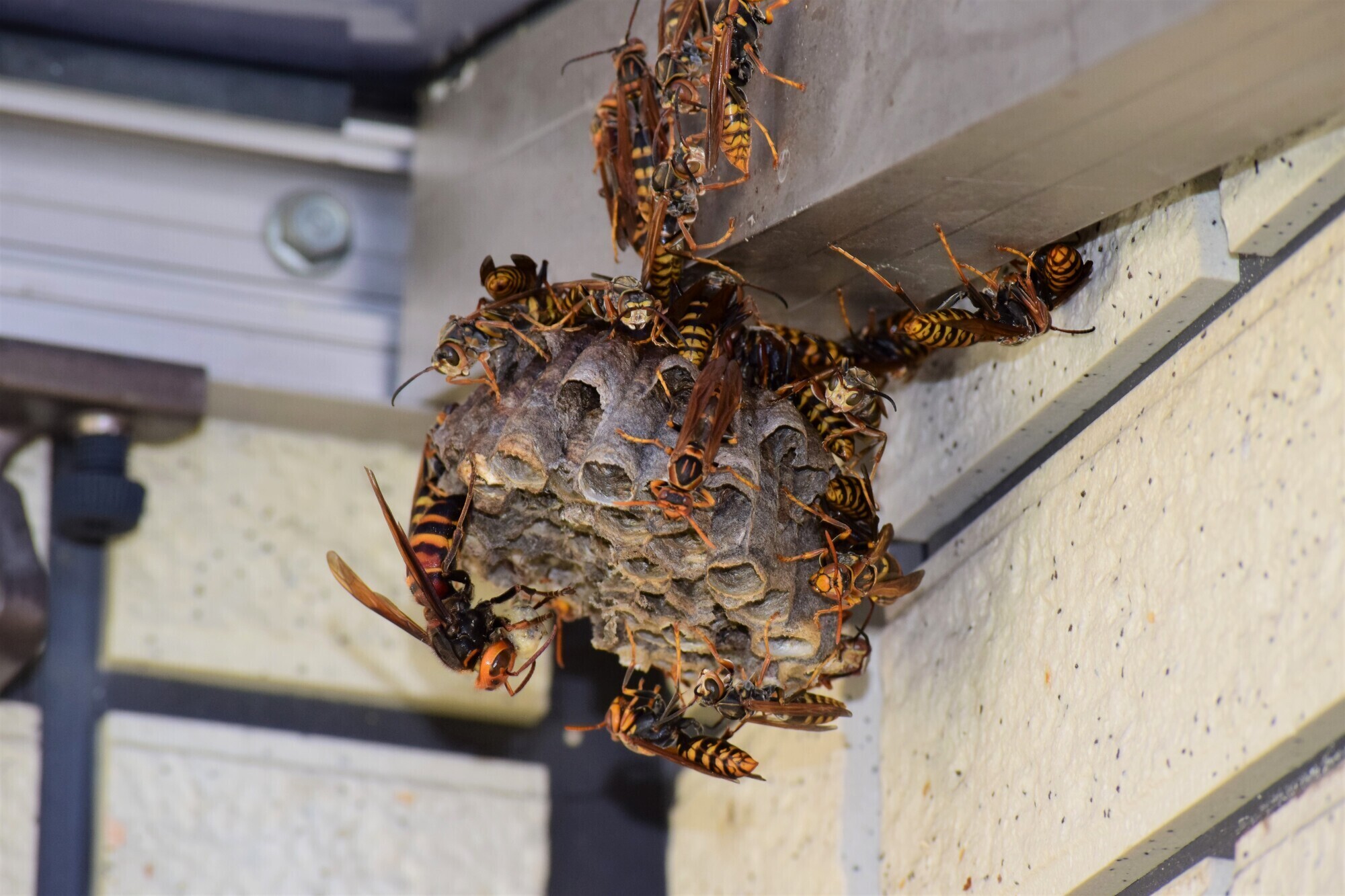 室外機に蜂の巣を作るアシナガバチの危険性