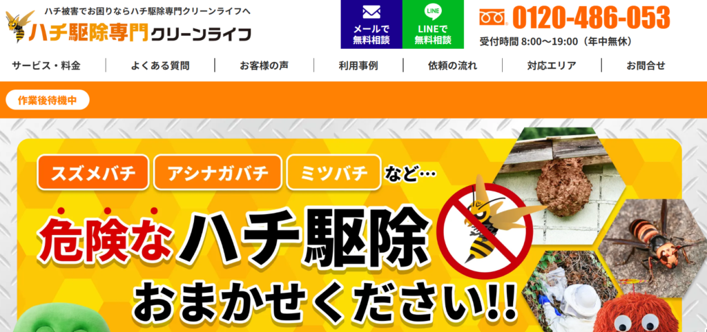 ツマアカスズメバチにお困りなら『ハチ駆除専門クリーンライフ』に今すぐ問い合わせてみましょう。