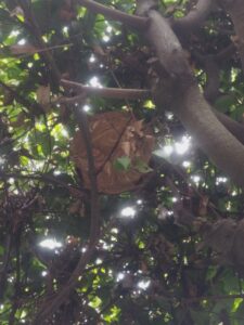 庭の木にスズメバチの巣がありました。