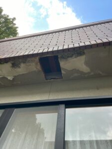 岡山県玉野市にて、神社の軒下に営巣された巨大なスズメバチの巣を駆除いたしました。2025年10月11日、10時30分に作業を開始。巣は屋根の重なり合う軒奥に形成されており、直径も非常に大きく、多数の成虫が巣の表面を覆う極めて危険な状態でした。